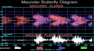 c.) The Maunder "Butterfly" Diagram is used to show how heliographic latitude of observed sunspots versus time.